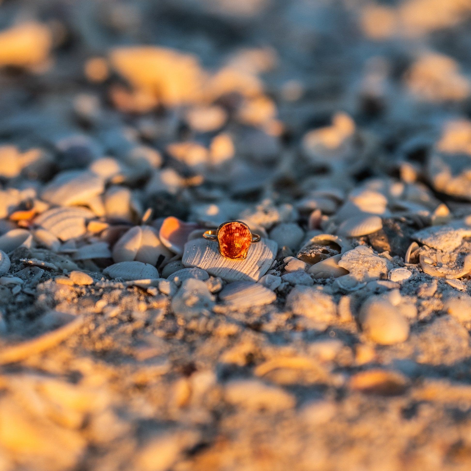 A little piece of ocean magic, captured in gold. This handcrafted ring features a naturally beautiful Calico Scallop shell collected along the serene shores of Southwest Florida. This ring is a sweet reminder of sandy toes, gentle waves, and days spent exploring the shoreline.